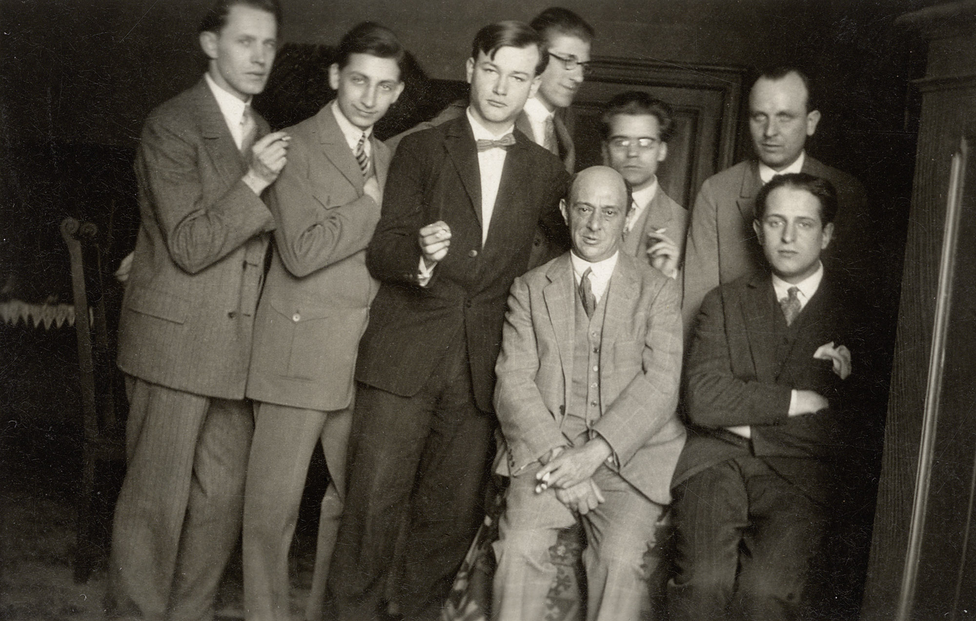 Der Lehrer mit seinen Schülern: Adolph Weiss, Walter Goehr, Walter Gronostay, Winfried Zillig, Arnold Schönberg, Erich Schmid, Josef Rufer, Josef Zmigrod, Berlin, 1926