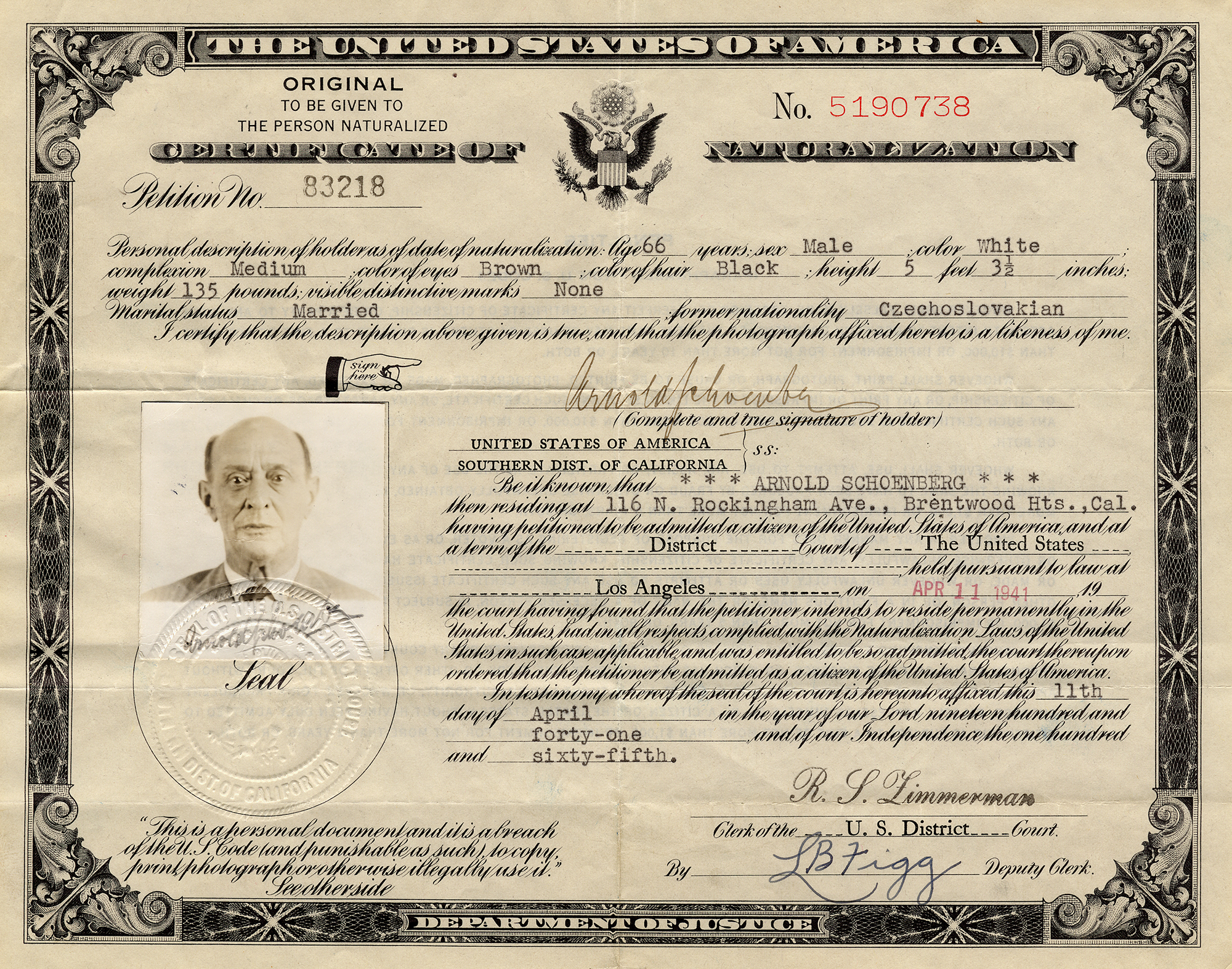 1941 wurde Schönberg amerikanischer Staatsbürger.
